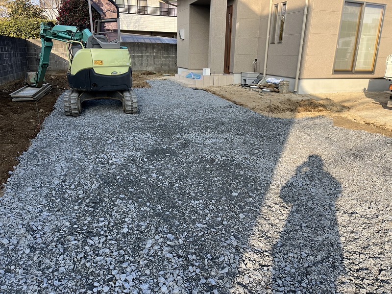 余分な土を搬出して基礎砕石を敷きならしていきます!