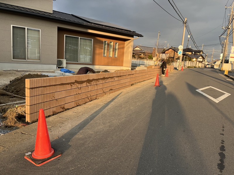 道路側で目立つ所なので、ブラウン系の化粧ブロックとさせていただきました