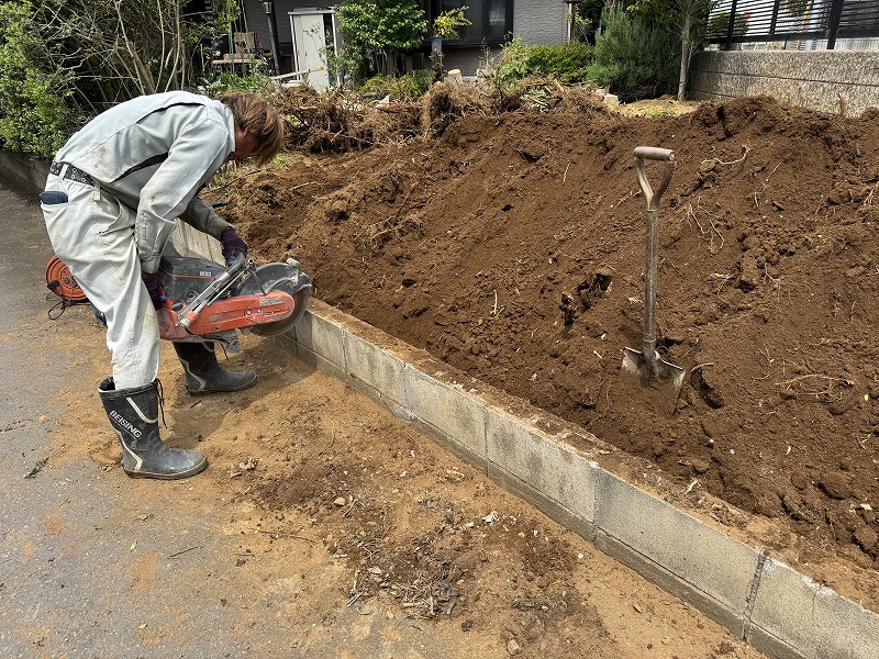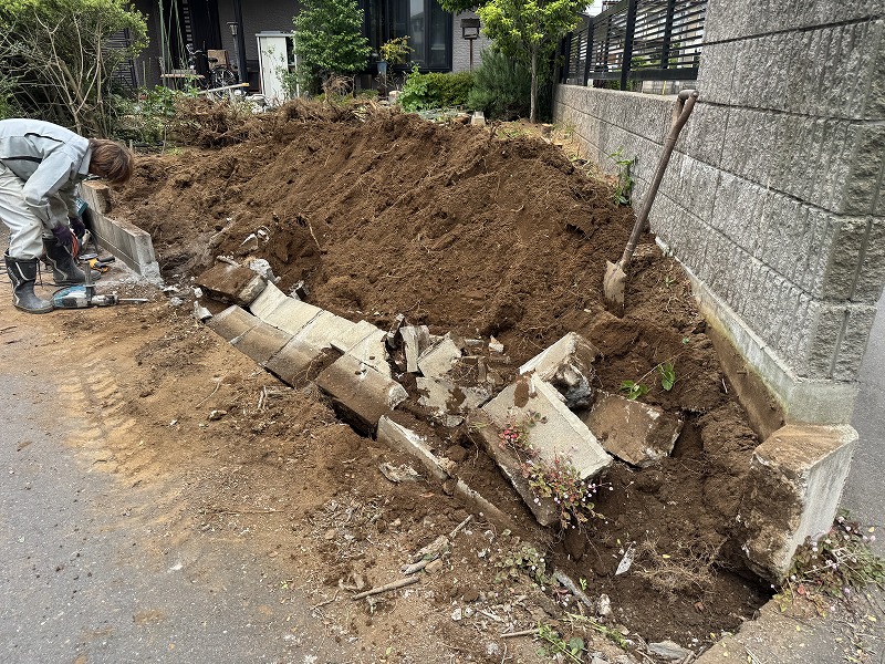 その次に既存の土留ブロックを解体していきます!