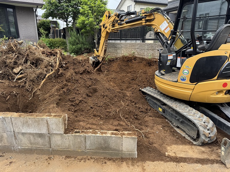 高低差のある敷地ですので、車が駐車できる高さまで余分な土を搬出していきます