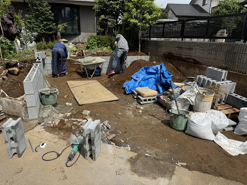 こちらはブロック積みの作業になります。