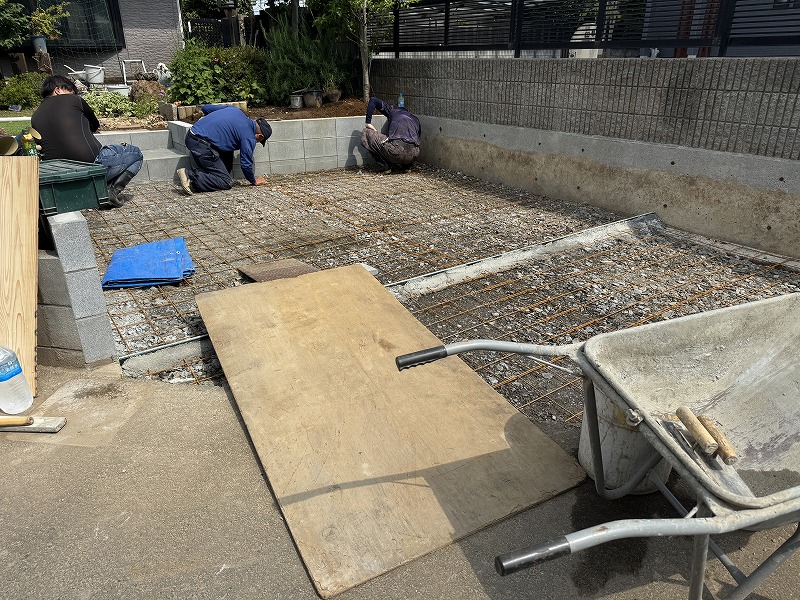 最後に生コンを流し込めば駐車場の完成です