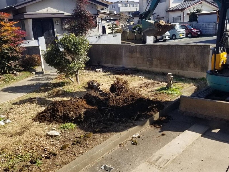 必要な駐車台数や不要な庭木などを確認して作業に取りかからせていただきました