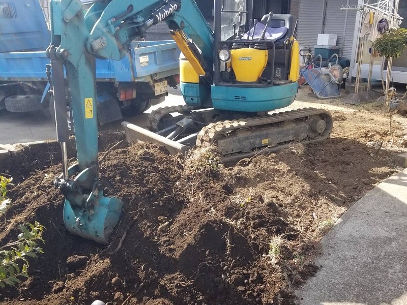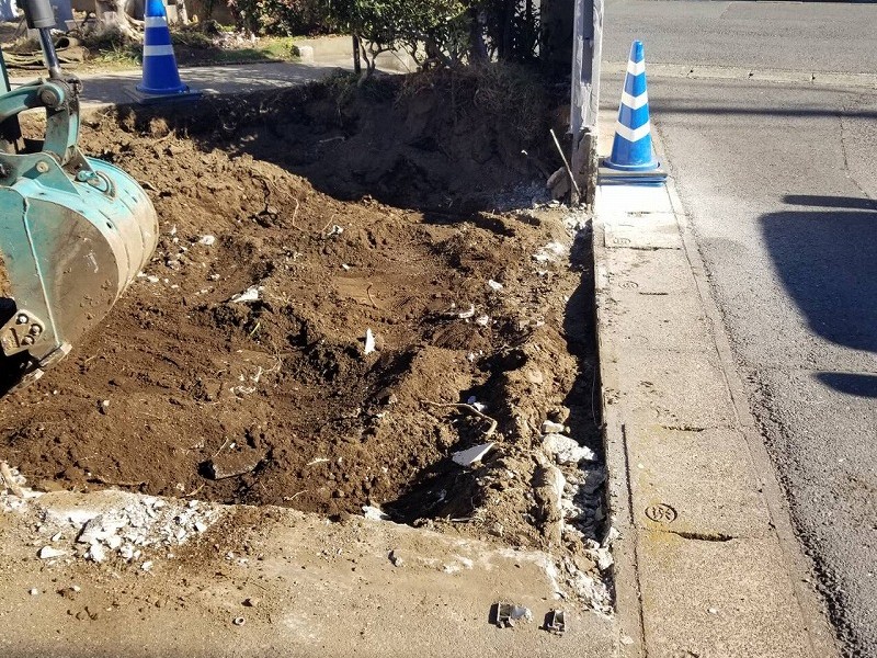 土の中には水道管などが通っている場合がありますので、慎重に掘削させていただきました。
