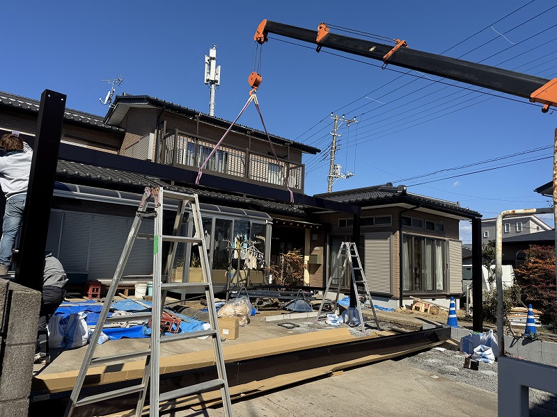 3台用の梁はとても重たいので、今回はクレーン作業とさせていただきました