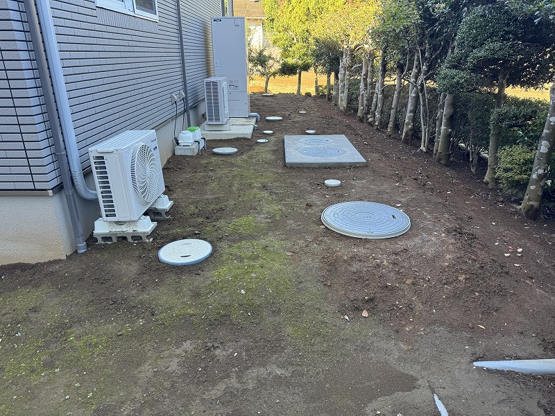 浄化槽廻りや配管廻りも綺麗に納めていきます!