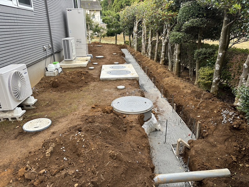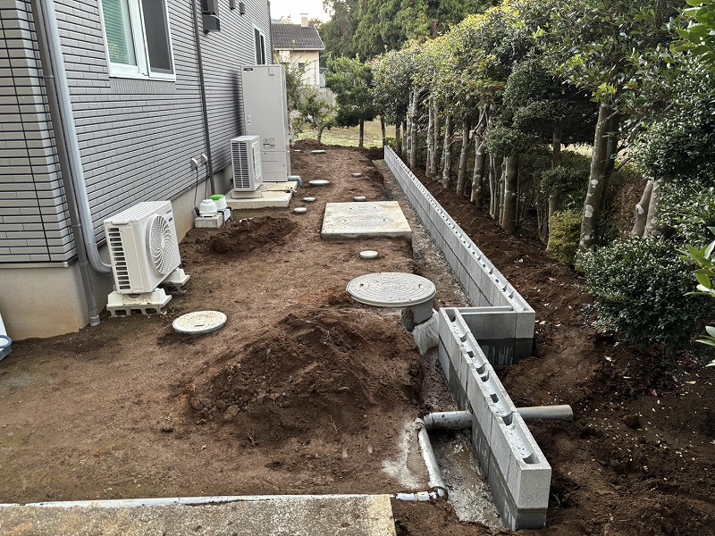 掘削作業で出た土は敷地内処理とさせていただきました。