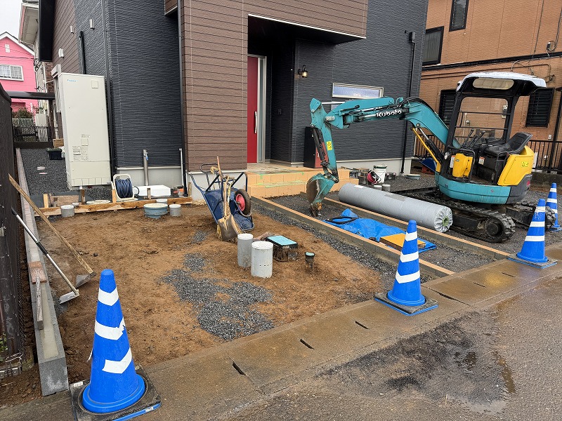 こちらは駐車スペースにコンクリートを流し込む為の準備となります。