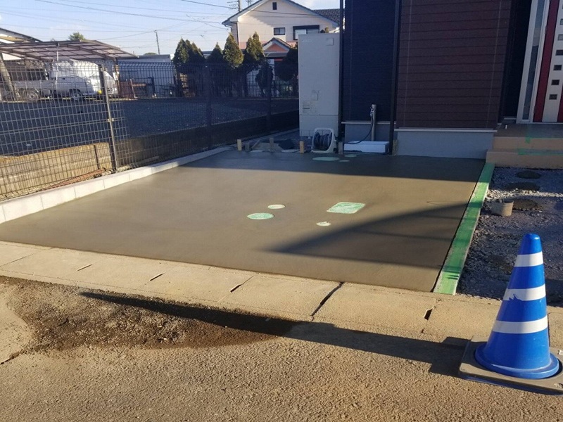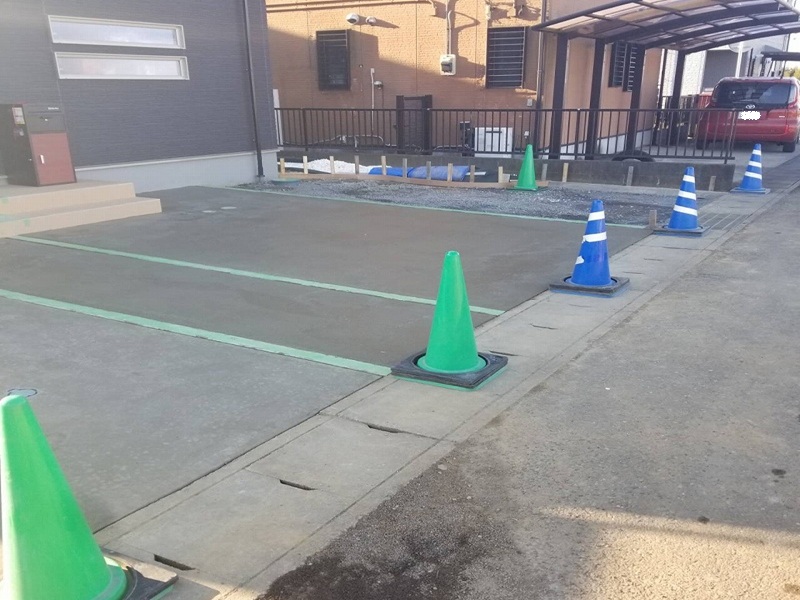 打設後1週間ほど養生をすればお車が駐車可能となります。
