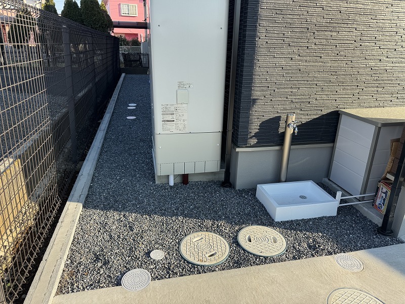 砂利下には防草シートを張りますので、雑草対策にもなります
