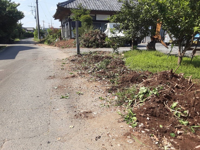 ⇧①生垣処分、伐採・抜根状況。