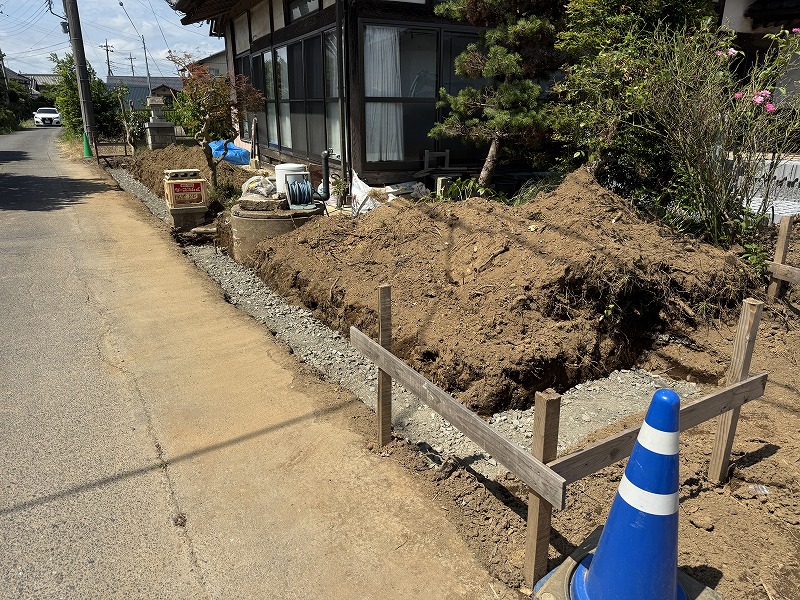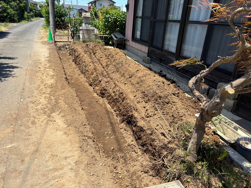 境界ブロックの基礎工事状況です!