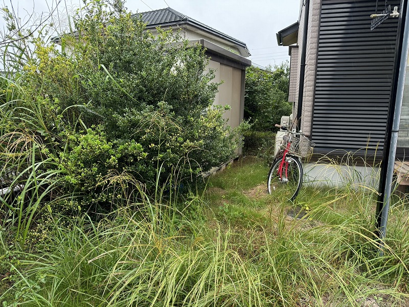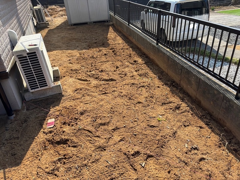 ご相談内容は「とにかく中庭の雑草を何とかしたいから、全てコンクリートを流したい」との事。