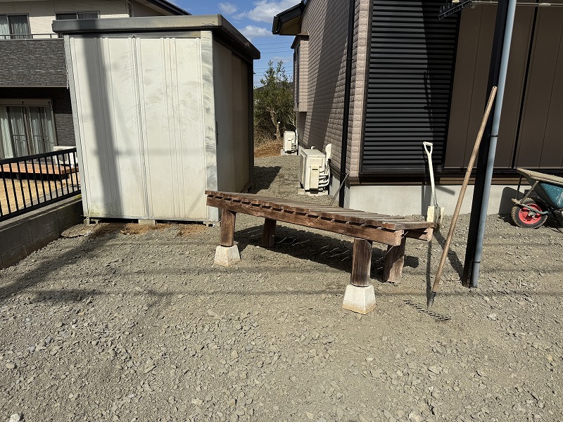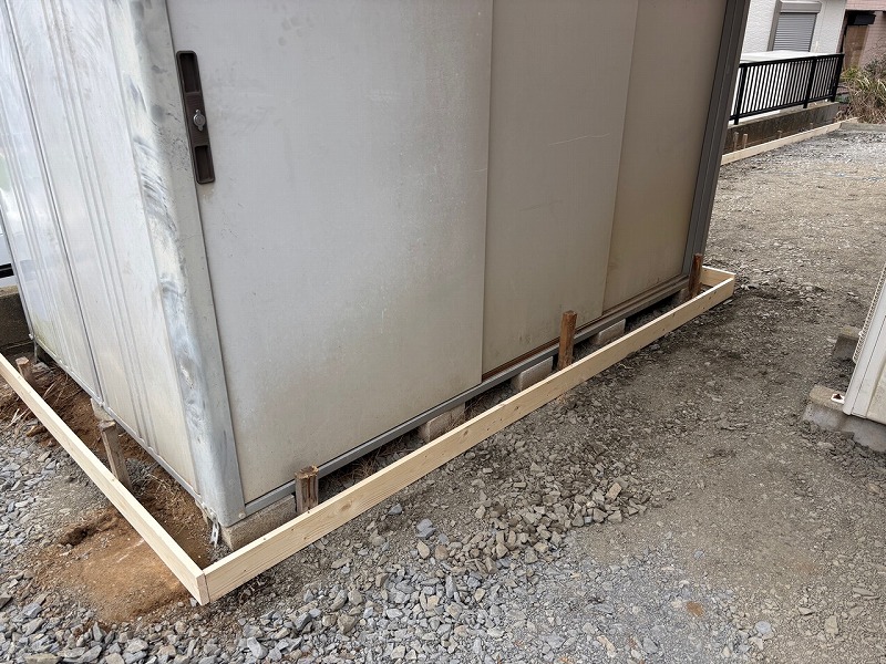 物置の下はコンクリートを流せないので、型枠で囲っていきます!