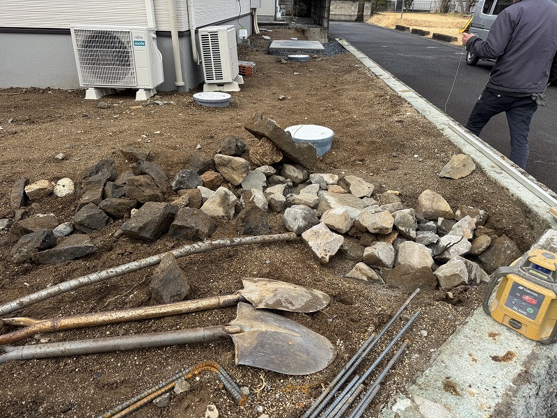 まずは、下地作り(掘削~砕石~コンクリート打設)をします。