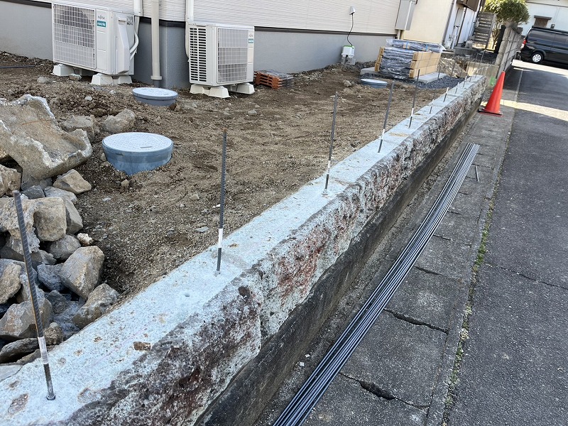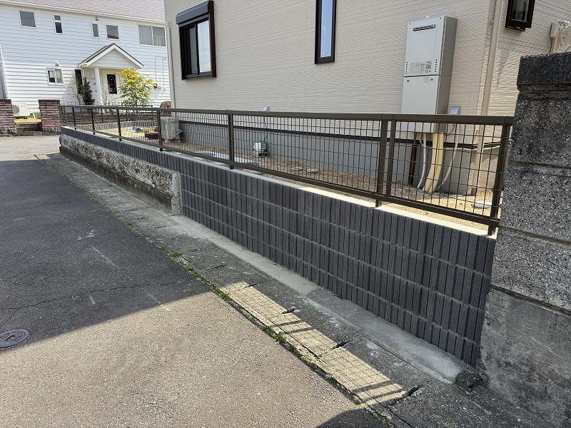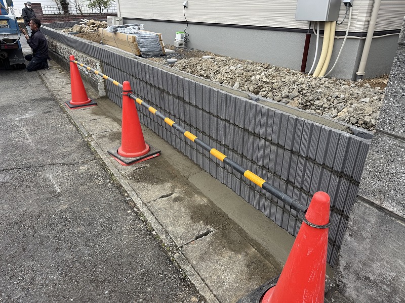 もともとあった塀にも化粧ブロックを足して、高さがきれいに揃いました。
