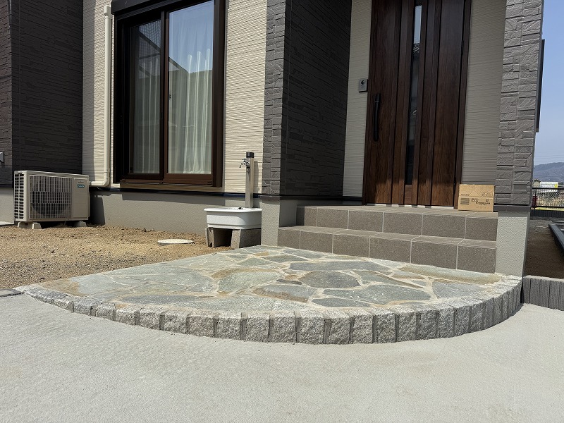 玄関前に乱張りを取り入れることによってお家の雰囲気も変わりますね!この乱張りの色合いも素敵です