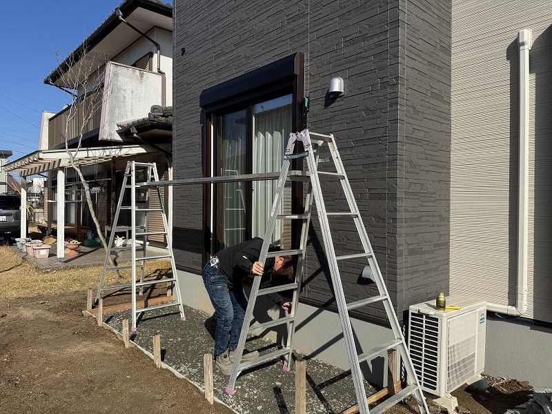 続いて、テラス屋根の設置です。LIXILのスピーネF型テラスタイプという製品になります。
