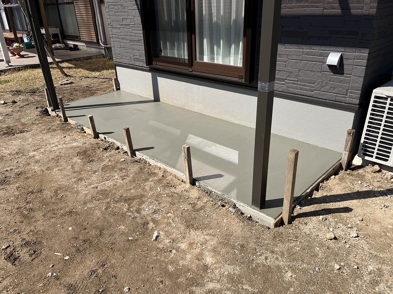 まず、ウッドデッキを置く部分にコンクリートを打設してから、設置します。