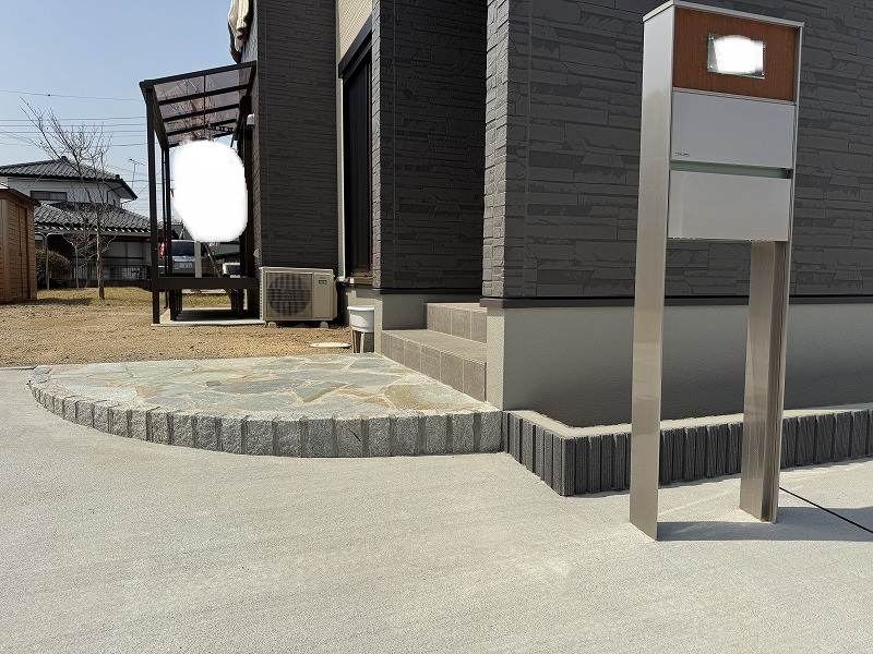 続いて門柱です。スタイリッシュですね!玄関アプローチの完成です!